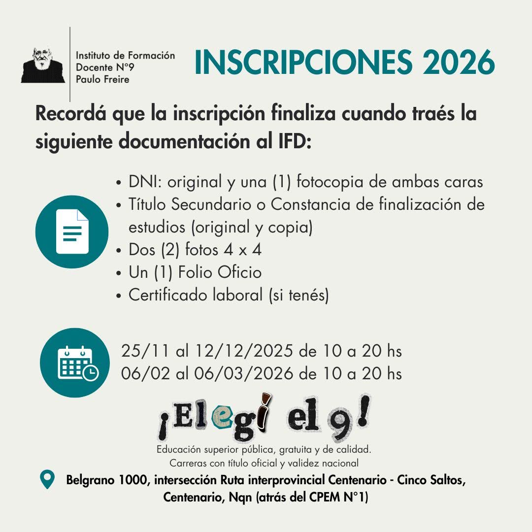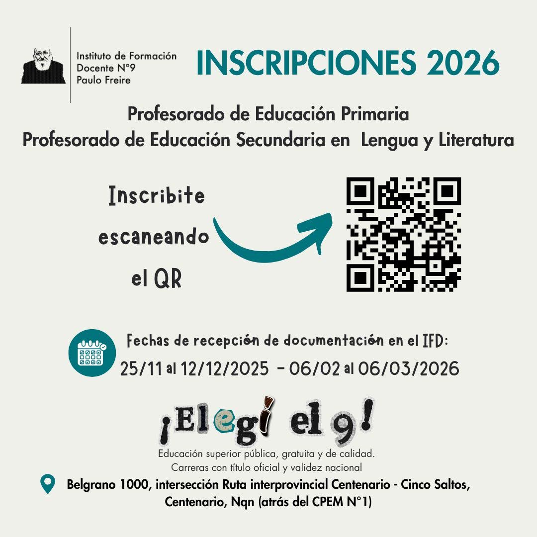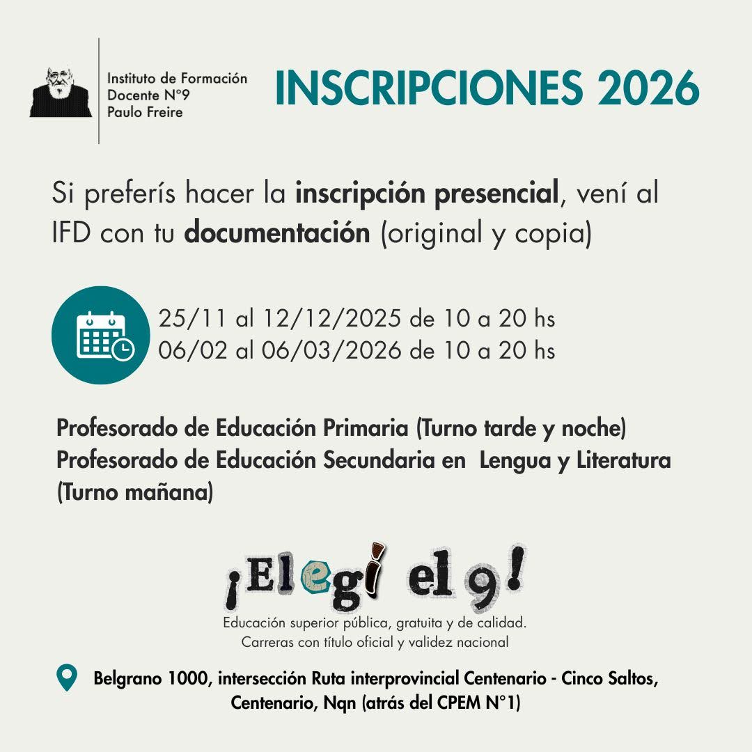 El Instituto de Formación Docente N° 9 fue creado el 25 de Abril de 1986 y en él se cursan las carreras Profesorado en Enseñanza Primaria y Profesorado de Educación Secundaria en Lengua y Literatura. Se encuentra ubicado en la localidad de Centenario (provincia Neuquén), a 15 km de la capital provincial y recibe estudiantes de localidades cercanas, incluidas varias de la provincia de Río Negro.